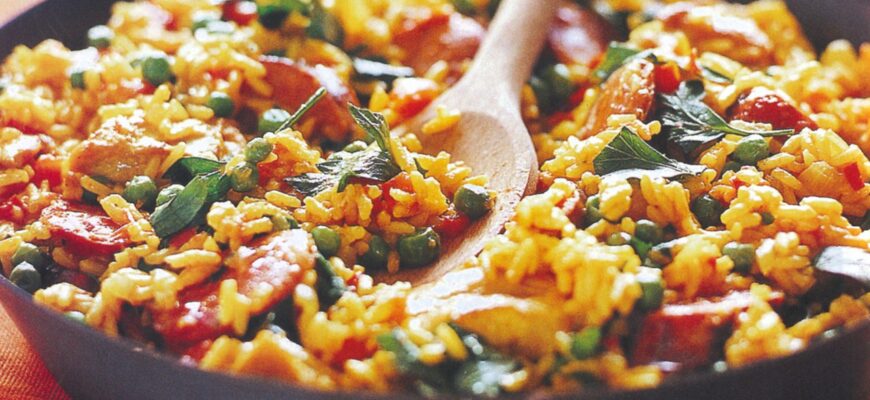 Одна из вариаций традиционного испанского блюда из риса и морепродуктов. Ингредиенты Оливковое масло 60 мл лук 2 шт болгарский перец 2 шт чеснок 4-5 зубчиков