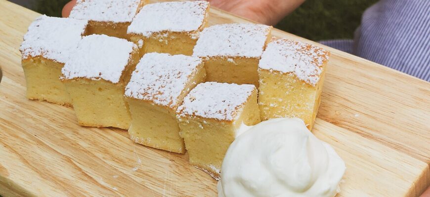 Ингредиенты мука – 350 г; горячее молоко – 250 г; сахар – 250 г; яйцо – 4 шт.; сливочное масло – 80 г + для формы; разрыхлитель – 2 ч. л.;