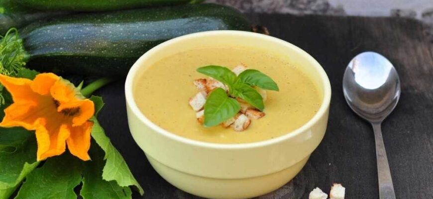 Этот крем-суп из кабачков имеет сладковатый вкус благодаря моркови, сладкому картофелю и луку, приготовленным на сливочном масле. Обычно я приправляю его