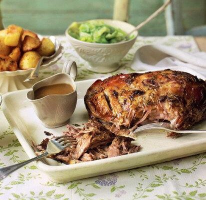 Запеченного ягненка выложите на деревянную доску, накройте фольгой и дайте постоять 45 минут. Количество порций 8 Время приготовления 3ч.