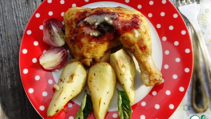 Количество порций 4 Время приготовления 1ч. Ингредиенты Курица 1.8 Килограмма Груша 3 Штуки Лимон 2 Штуки Лук 1 Штука Лук зеленый 1 Пучок Масло оливковое 2.