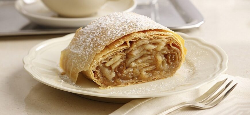 Как насчет чашечки чая с кусочком вкуснейшего штруделя? Тесто пшеничная мука — 150г соль — 1щепотка вода — 80мл растительное масло —