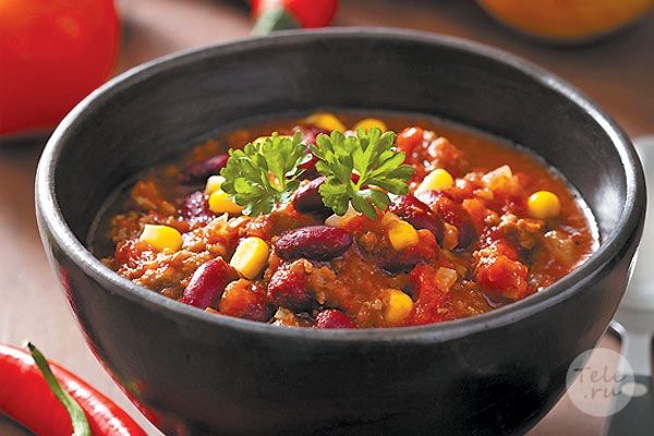 Ингредиенты: ▫️ говяжий фарш — 500 г ▫️ перец сладкий красный — 2 шт ▫️ лук красный — 1 шт ▫️ помидоры консервированные в собственном соку — 400 г ▫️ фасоль