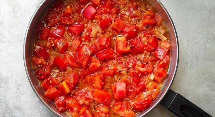Тушеный сладкий перец с помидорами и маслинами — сытная овощная закуска, которая станет идеальным гарниром к мясу или полноценным ужином.