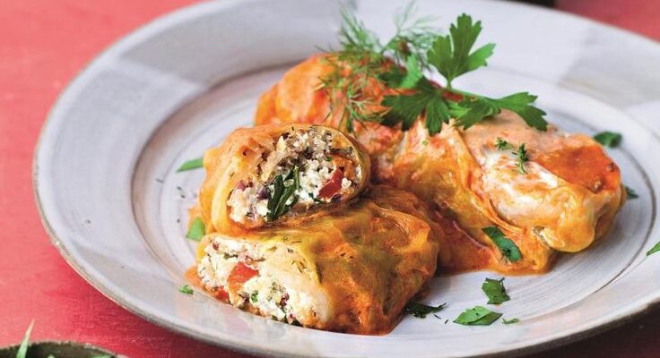 Аппетитная альтернатива привычным голубцам с мясом. Готовить даже легче, чем классический вариант. Довольно нейтральные кускус и фета охотно впитают томатно-сметанный