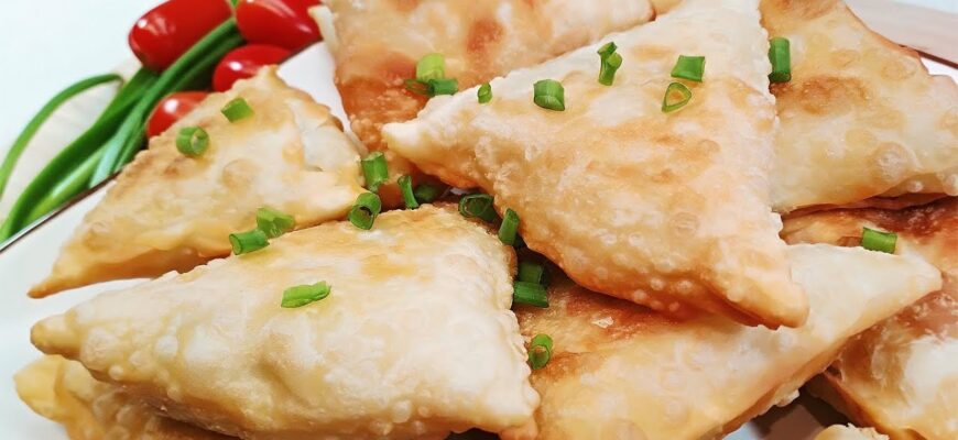 Хочу поделиться простым рецептом очень аппетитных хрустящих слоёных пирожков с начинкой из обычных плавленных сырков и зелёного лука. Продуктов для этого