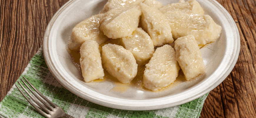 Вкусный завтрак для всей семьи. Клёцки получаются очень нежными, малосладкими и довольно сытными. Продукты (на 2 порции) Йогурт густой — 350 г Яйцо — 1 шт.