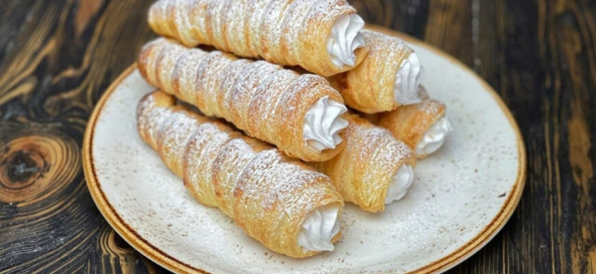 Ингредиенты: Тесто слоёное(дрожжевое)-500 гр. Сгущёнка вареная-1 банка, Сливочное масло-200 гр. Приготовление: Тесто разморозить,немного раскатать,нарезать