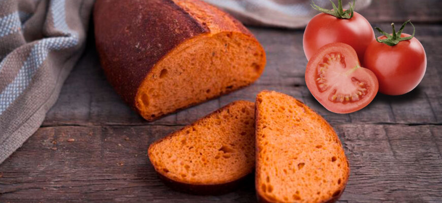 Хлеб обычно готовят на воде или молоке. Но этот домашний хлеб — особенный, ведь он готовится на основе томатного сока с мякотью, полученного из свежих