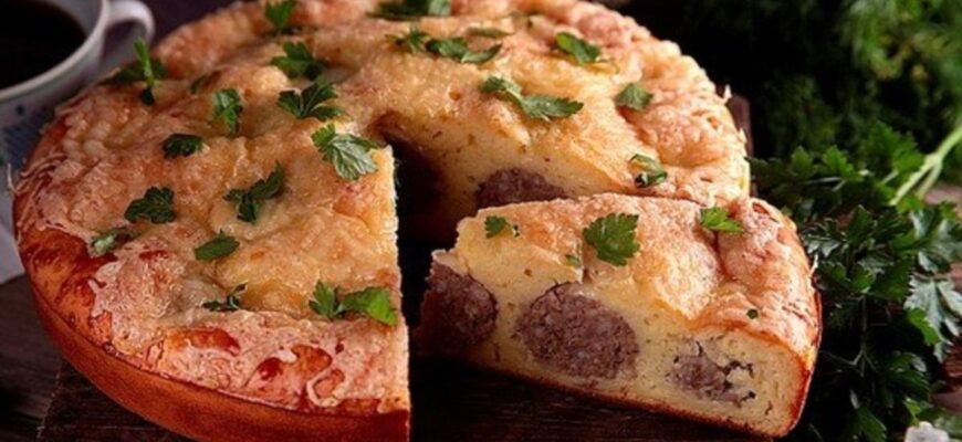 Сочные фрикадельки, нежнейшее тесто и запеченная сырная корочка! Причем в том месте, где фрикадельки, образуются вулканчики расплавленного сыра.
