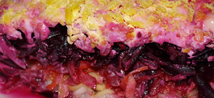 Основа салата одна, но тем не менее каждая хозяйка готовит этот салат по-своему, начиная от способов измельчения, последовательности слоёв, заканчивая