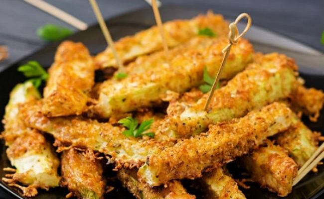Закуска может быть и полезной и вкусной одновременно. Приготовим без капли жира хрустящие кабачковые пальчики — получится вкуснее чипсов и уж точно гораздо полезнее.