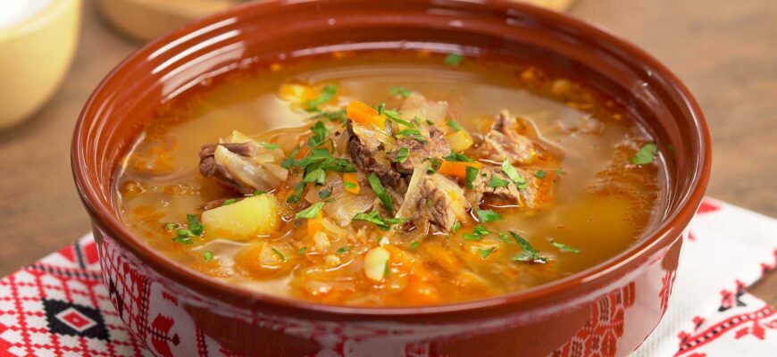 Попробуйте очень вкусные и простые в приготовлении настоящие щи! На среднюю кастрюлю супа нам потребуется: Мясо говядина — 800-900 грамм Квашенная