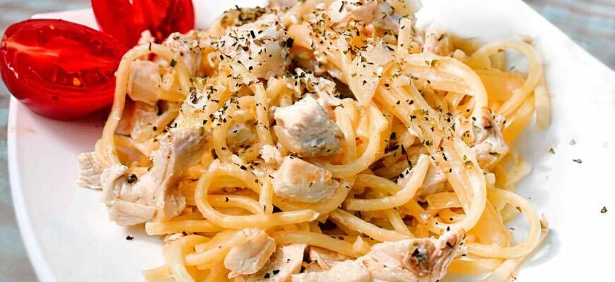 Ингредиенты: 300 г спагетти или любой другой пасты по вашему выбору 2 столовые ложки оливкового масла 2 зубчика чеснока, измельченных 1 чашка сливок (жирности