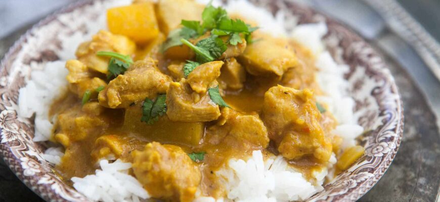 Ингредиенты: 500 г куриного филе, нарезанного на кубики 2 ст. ложки карри-пасты (выберите между красным, желтым или зеленым карри) 400 мл кокосового молока