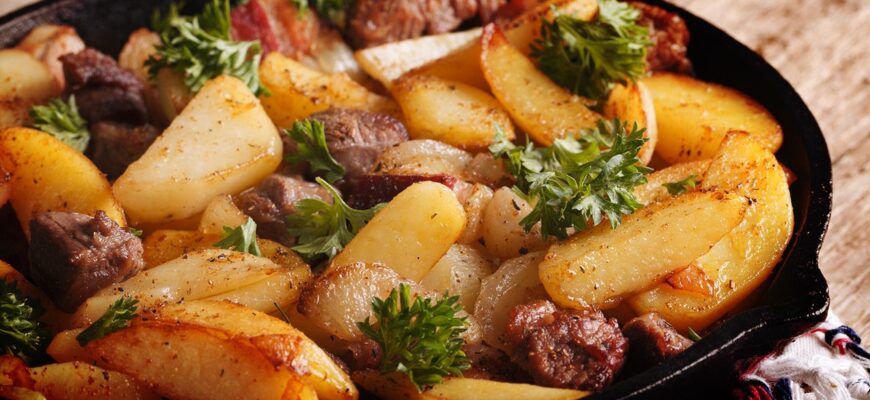 Жареная картошка с мясом – это простое, сытное и очень вкусное блюдо, популярное во многих странах мира. История его появления уходит в глубь веков.