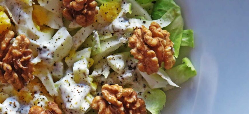 С КУРИЦЕЙ, ОВОЩАМИ, ФРУКТАМИ И ДРУГИЕ Грецкий орех — важный ингредиент многих холодных закусок. Он может стать частью соуса, может отвечать за текстуру