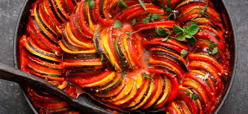 Потребуется немного времени, но зато практически не нужны усилия. Тебе понадобится: 1 цукини 1 кабачок 1 баклажан 6 помидоров 2 болгарских перца 1 луковица