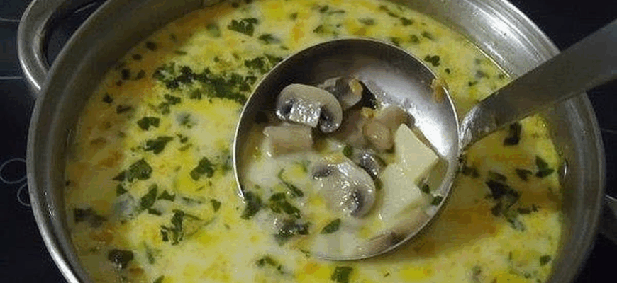 Вегетарианцы оценят такой диетический суп. Грибы и сыр – эти продукты сделают любое блюдо нежным и вкусным. Обязательно приготовьте такое блюдо на первое своей семье.