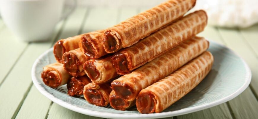Если нет вафельницы, готовьте в духовке или на сковороде. Из чего делают тесто для вафельных трубочек Классическое тесто 5 яиц; 180 г сахара;