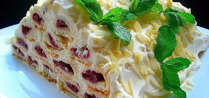 Ингредиенты: около килограмма вишен без косточек Для теста: 3,5-4 стакана муки пачка маргарина (250 гр) стакан сметаны Для крема: пол литра сметаны 4-5