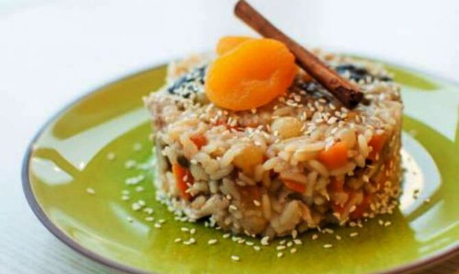 На вкус это блюдо получается довольно пикантным, а за счет изюма и кураги слегка сладковатым. Но если жирный плов с мясом в эти дни табу, то почему бы