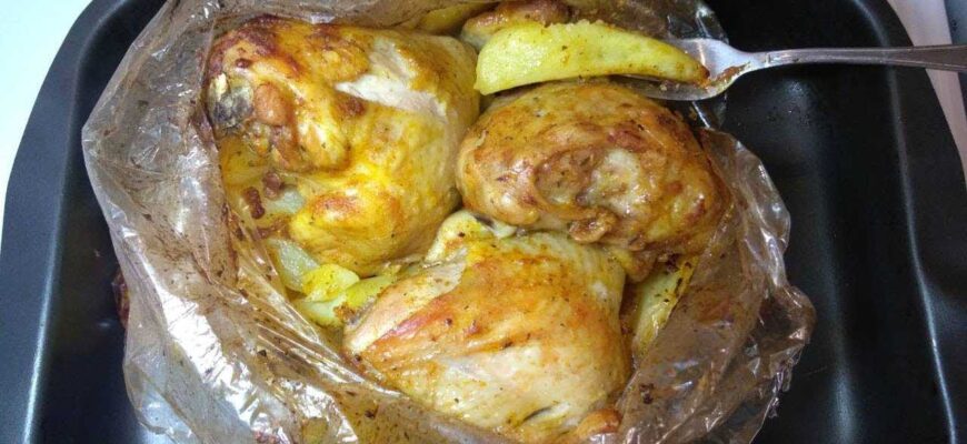 Курица с картошкой в рукаве, запеченная в духовке, получается очень вкусной и аппетитной. Такой вариант приготовления картошки с мясом намного полезнее, чем жарка.