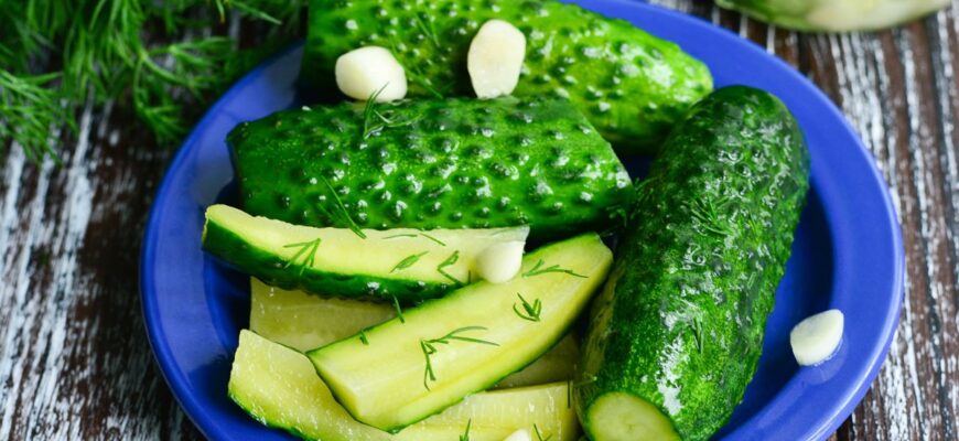Этот рецепт малосольных огурцов придется по вкусу тем, кто не слишком любит солености. Количество соли здесь можно добавить самый минимум, а готовиться