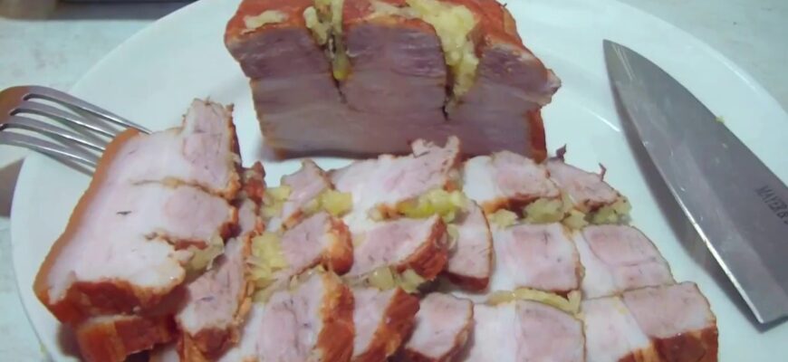 Эта закуска из сала и свино-говяжьего фарша очень проста в приготовлении. Пригодится для перекуса, а если красиво подать, то и на праздничный стол можно поставить.
