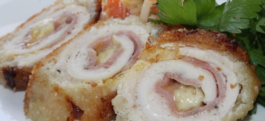 Не только вкусно, но и красиво — можно приготовить на праздничный стол. Рулетики румяные, аккуратные, с начинкой внутри. Завернуть в них можно все