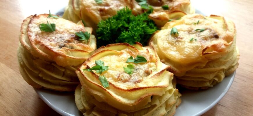 Необычная подача картофельного пюре с мясом в качестве второго блюда. Из картофельного пюре формируем порционные гнезда, внутрь помещаем начинку из мясного фарша.