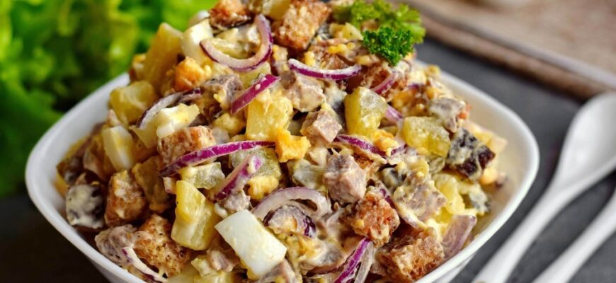 Мясные салаты всегда относятся к категории сытных и питательных блюд, которые можно подавать на стол самостоятельно, без гарниров и закусок.