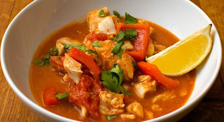 К такой похлебке можно сварить на пару зеленую фасоль. Для приготовления 4 порций нужно: 1 небольшой цыпленок весом 1–1,2 кг 2 сладких перца 1 кг помидоров