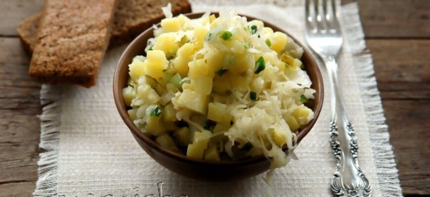 Ингредиенты картофель вареный — 5 шт. квашеная капуста — 200 гр. лук репчатый — 1 шт. соль по необходимости перец зелень Пошаговый рецепт