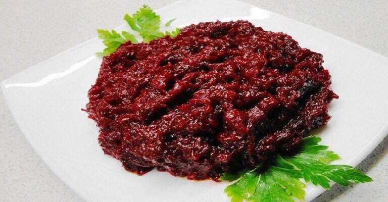 Ингредиенты свежая свекла — 3 шт. (около 1 кг) сладкий перец — 1/2 шт. томатная паста — 2 ст.л. лавровый лист — 2 шт перец черный