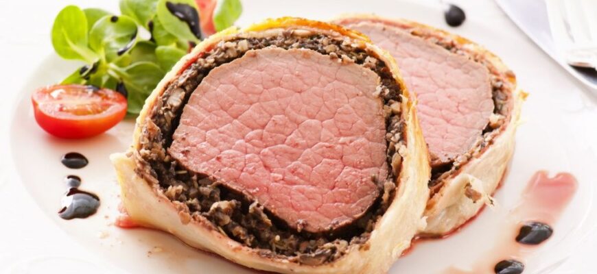 Ингредиенты слоеное тесто — 1 пласт свиная вырезка — 300-400 гр. грибы — 200 гр. лук — 1 головка сушеный чеснок —