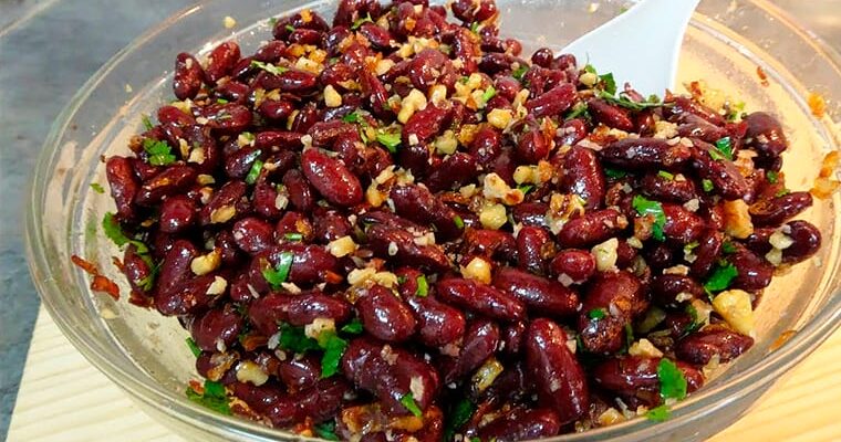 Хочу предложить очаровательный и очень простой салатик из фасоли. Его нежный ореховый вкус не оставит равнодушным никого, даже тех, кто любит исключительно мясную пищу.