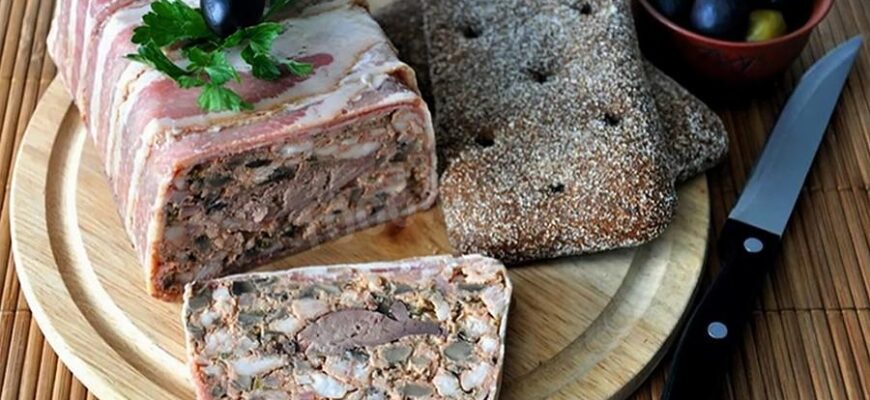 Если вам нравится более мелкая текстура террина, вы можете провернуть свинину с телятиной через мясорубку, так мясные слои получатся более плотными.