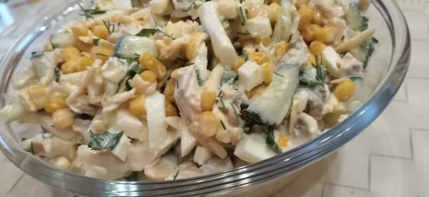 Если вы ещё не пробовали такое сочетание продуктов, то могу вам посоветовать приготовить этот простой, но очень вкусный салат. Салат, который подойдёт
