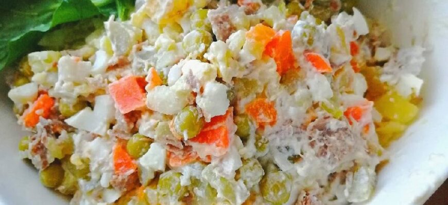 Ингредиентный состав данного салата немного похож на компоненты для приготовления всеми известного Оливье. Эти салаты действительное похожи, как своим