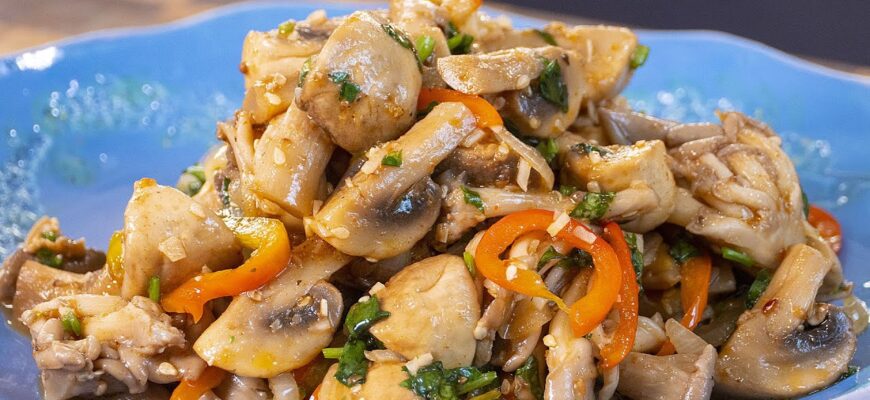 Друзья, привет! Ещё один простенький рецепт грибного салатика в стиле «по-корейски» подсмотрел у одного известного шеф-повара, решил приготовить