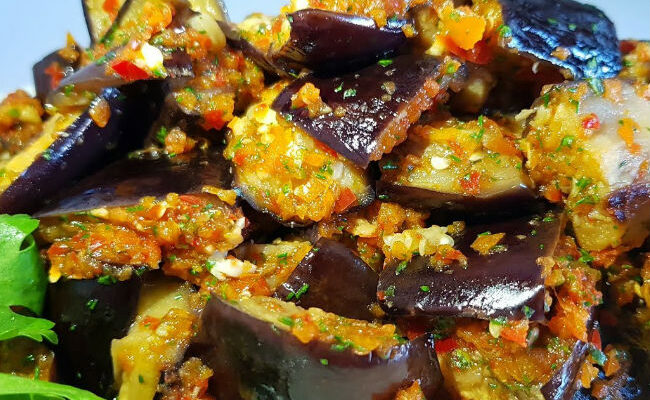 Баклажаны сделаем такой закуской, что все будут просить добавки. А самое главное, их и в банках можно на зиму закрывать. На 700 граммов баклажанов нам