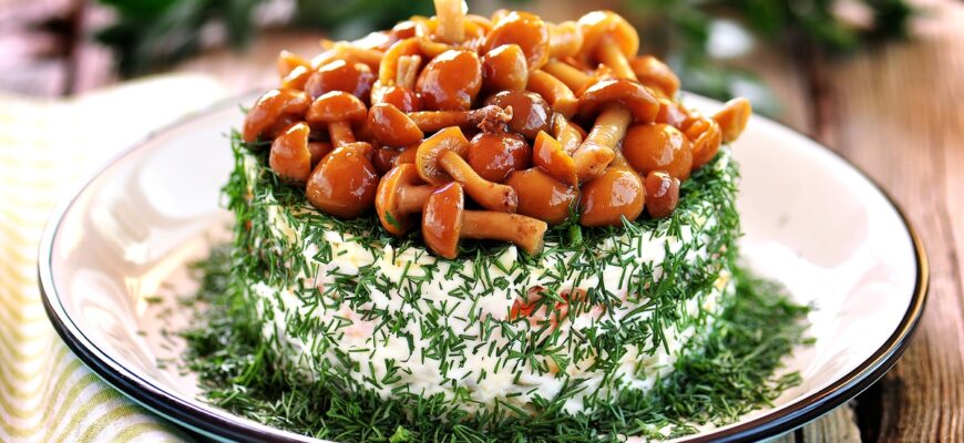 Очень вкусный салатик, который я подаю порционно, раскладывая в салатные тарелочки с помощью маленького кулинарного кольца. Смотрится очень достойно, подойдёт