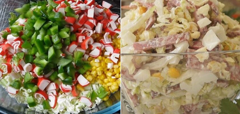 Сытный салат с мясом выходит настолько вкусным, что его часто просят повторять несколько дней подряд. Готовить же его элементарно — берем и смешиваем овощи