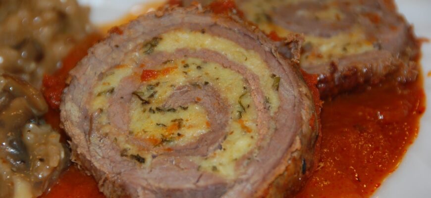 Я использовала для этого рецепта самое дешевое говяжье мясо — пашину. Это тонкое плоское мясо, которое не очень ценится, но которое идеально для рулета.