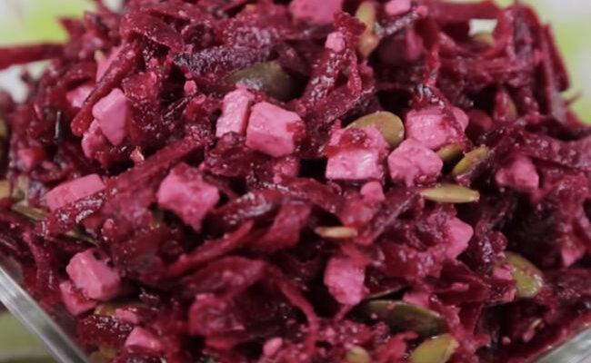 Простой и очень вкусный салат из свеклы мало кто готовит и совершенно зря. Берем одну свеклу, добавляем сыр и минутный салат съедают за секунды.
