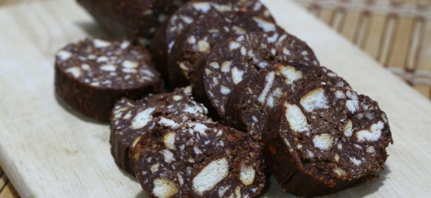 Время приготовления: 30 минут (+2 часа для застывания) Калорийность: 380 ккал на 100 г Сложность: легко Шоколадная колбаса — это простой, но невероятно