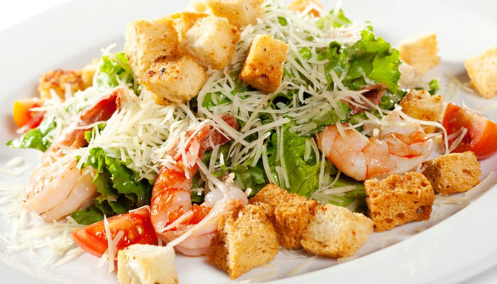 Салат «Цезарь» с креветками — один из самых популярных ресторанных вариантов. Он легкий, изысканный и всегда уместный: на ужин, для гостей или даже к праздничному столу.