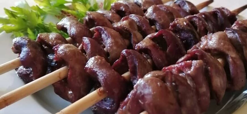 Сложность: лёгкая Время приготовления: 1 час (включая маринование) Порций: 4 Калорийность: ~160 ккал на 100 г Куриная печень на мангале — блюдо, которое