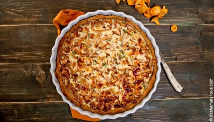 Ароматный пирог с нежным песочным тестом, сочной курицей и лесными лисичками — отличное блюдо, которое украсит как повседневный, так и праздничный стол.